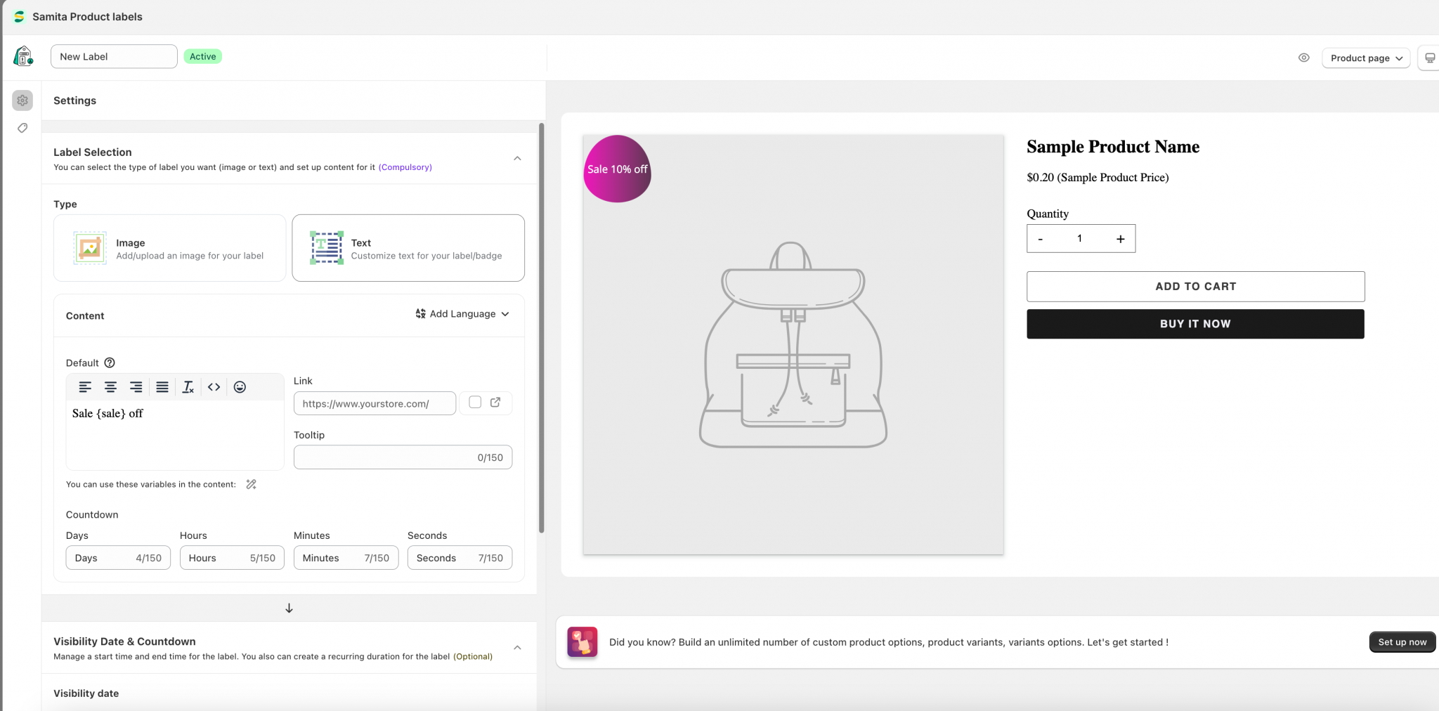 To find the setting, please go to the app > Badges and Labels > Set up a label or badge first:
