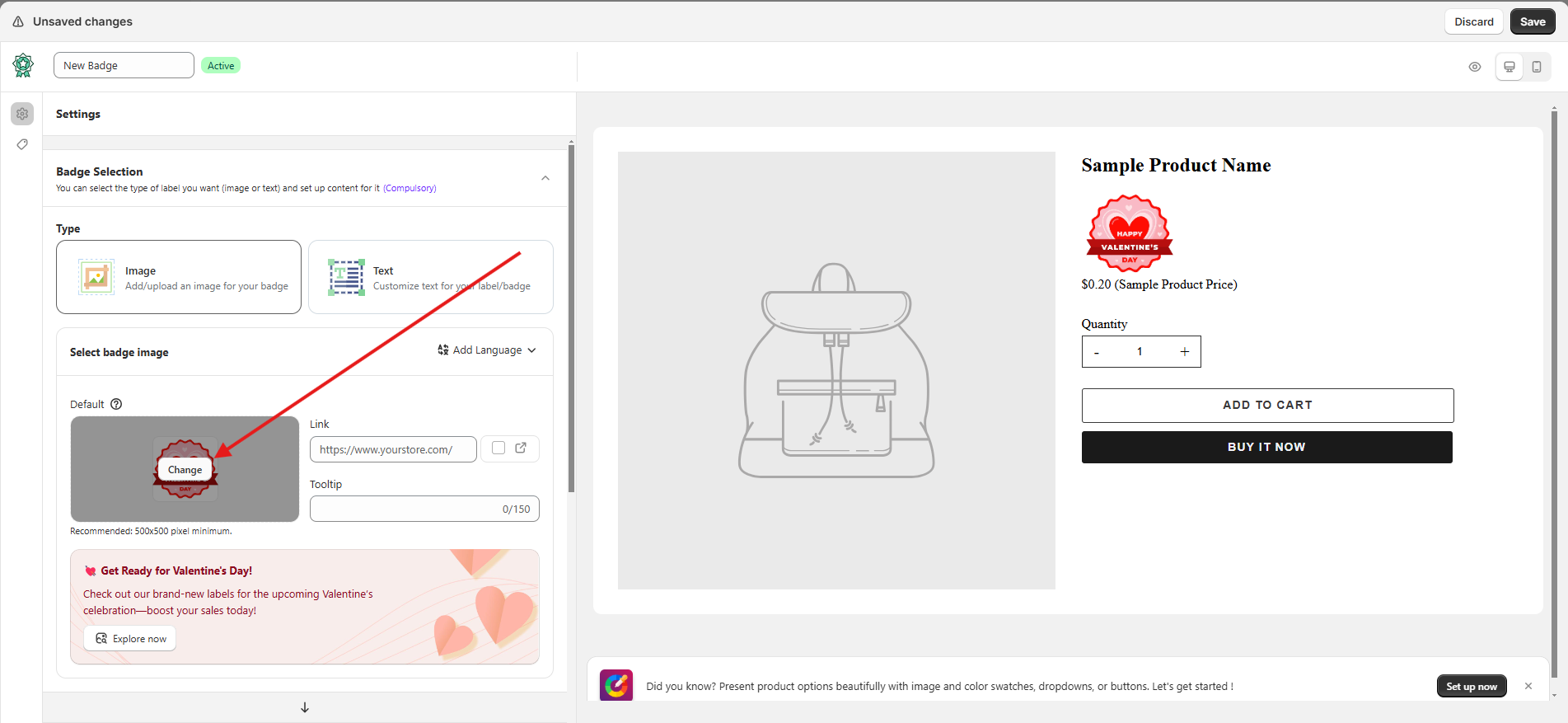 2. Choose **“Select Image”** to change the Label/Badge