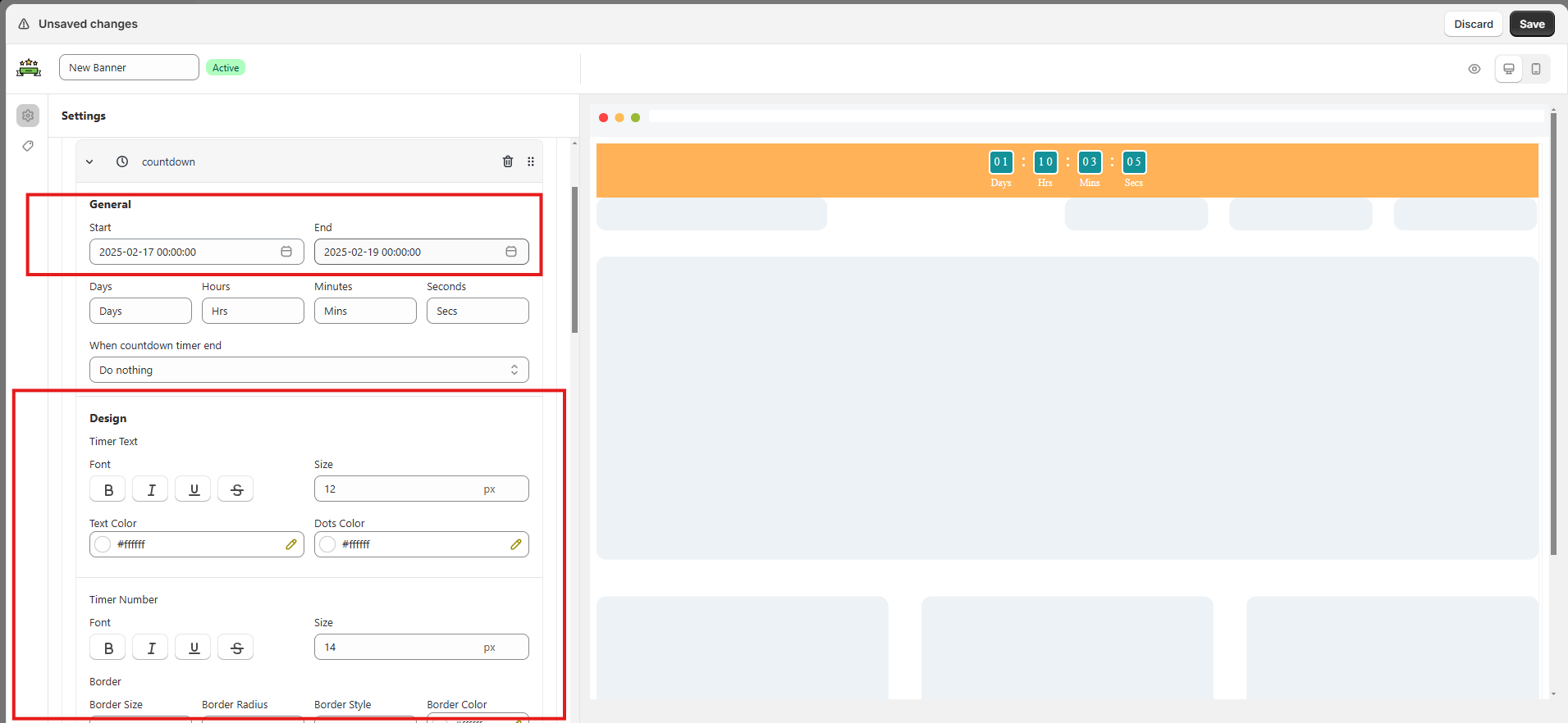&#x20;3\. For each content type, you can adjust time to start and end, the text or color