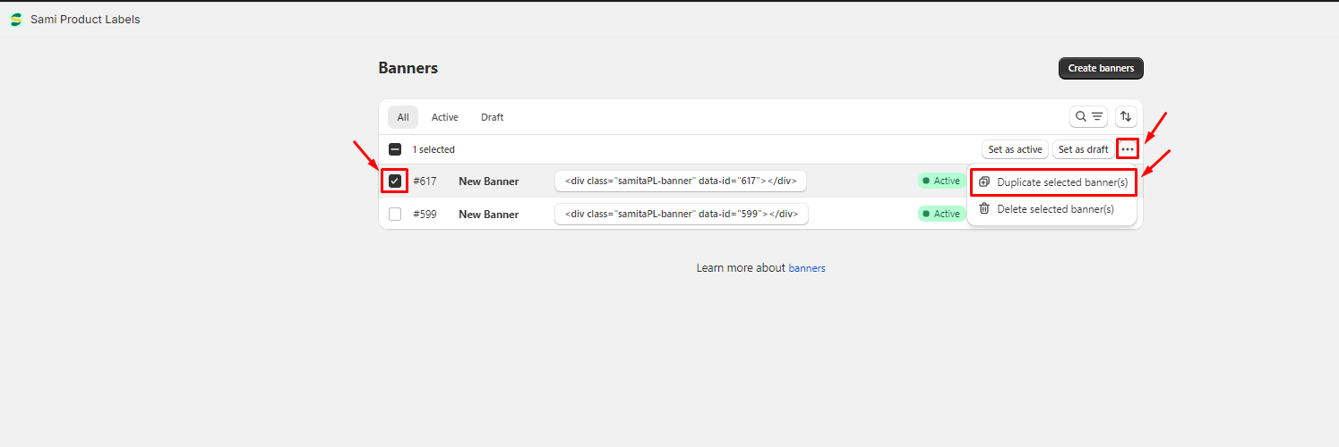 3. Click **More actions** icon > click **Duplicate selected banner(s)**&#x20;
