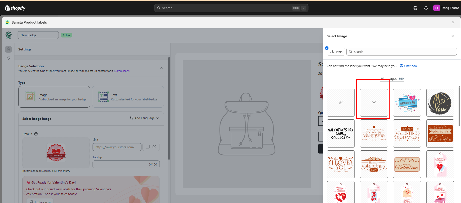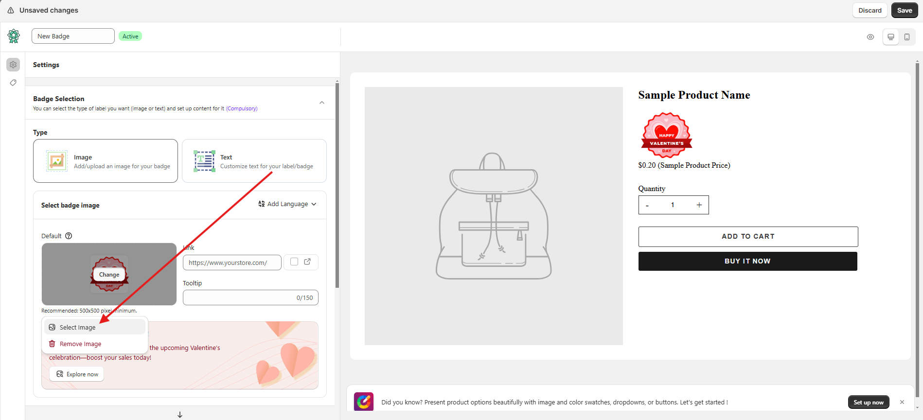 Choose “Select Image” to change the Label/Badge