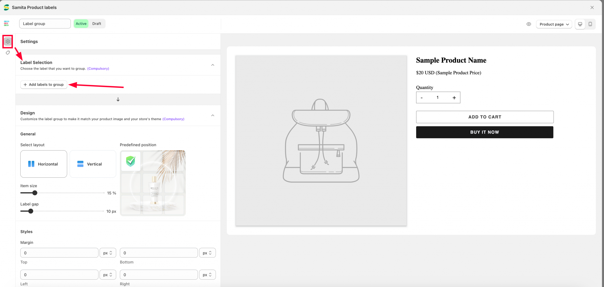 **Label Group feature** allows you to apply **3 to 4 labels** in a product and make them align in a vertical/horizontal way. To better understand how to do it, kindly follow this document:&#x20;
